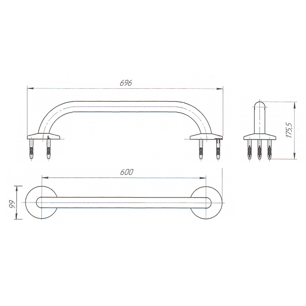 Поручень настенный -1 шт, крепление (шуруп ф6 х 60 н/ж - 6 шт, дюбель10x60 - 6 шт) - 1 шт, паспорт - 1 шт